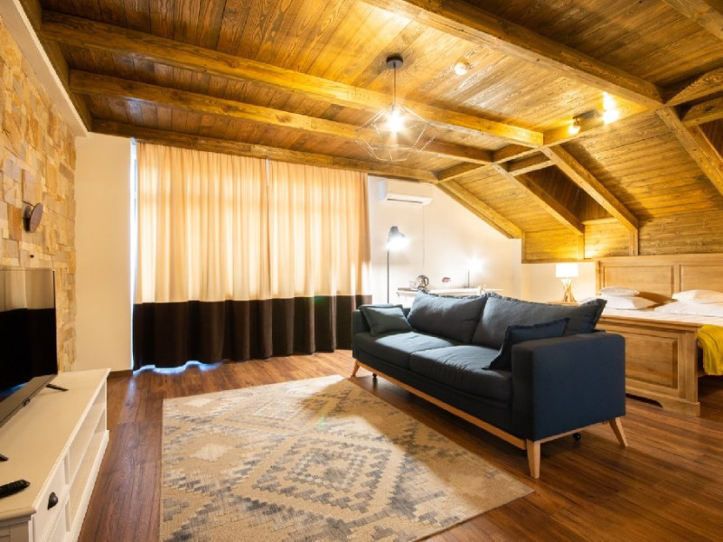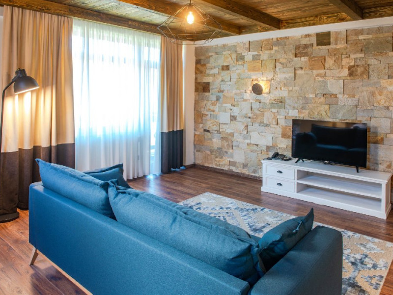 Apartament Deluxe - cu suprafata de 50 mp, cu balcon, cu un pat dublu extra-large in dormitor si canapea extensibila in living.