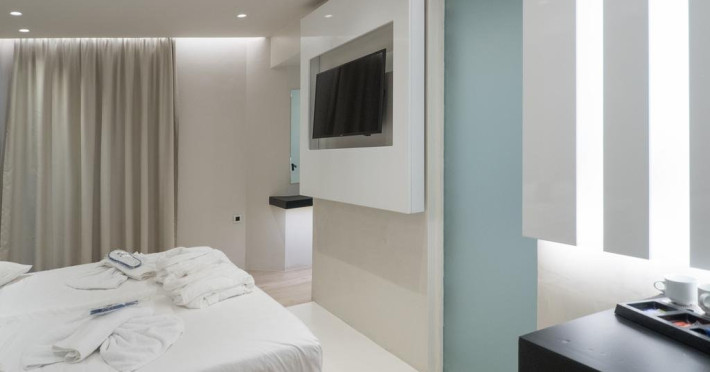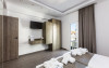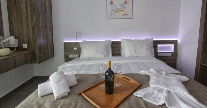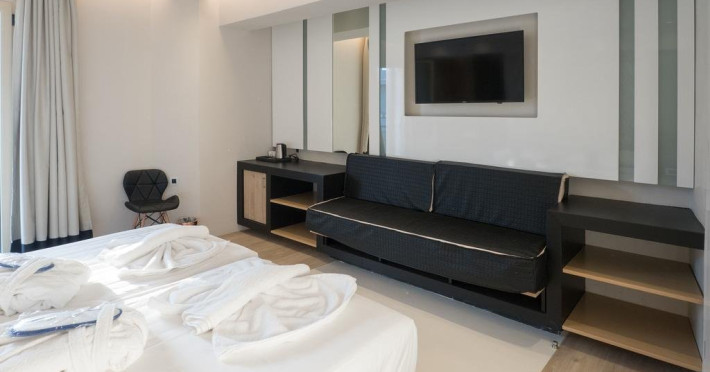 Cu un design modern si facilitati contemporane, camerele si suitele acestui hotel te intampina cu lux si confort. Fiecare camera este amenajata cu grija pentru a oferi o experienta de neuitat, iar facilitatile de top iti asigura ca fiecare moment petrecut aici este la inaltimea asteptarilor tale. De la aerul conditionat pentru a te racori in zilele toride de vara, la televizorul cu ecran plat pentru a te bucura de divertismentul preferat, si pana la conexiunea Wi-Fi pentru a ramane conectat cu cei dragi, fiecare detaliu este gandit pentru confortul tau. Baia privata iti ofera intimitate si rasfat, iar balconul cu vedere la mare sau la gradina iti incanta privirea si iti ofera un colt de relaxare in aer liber.