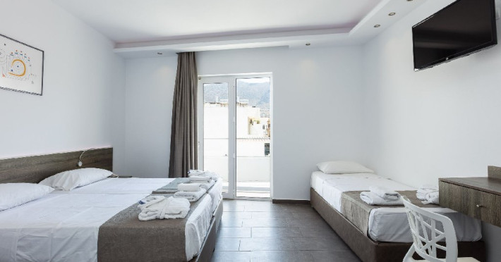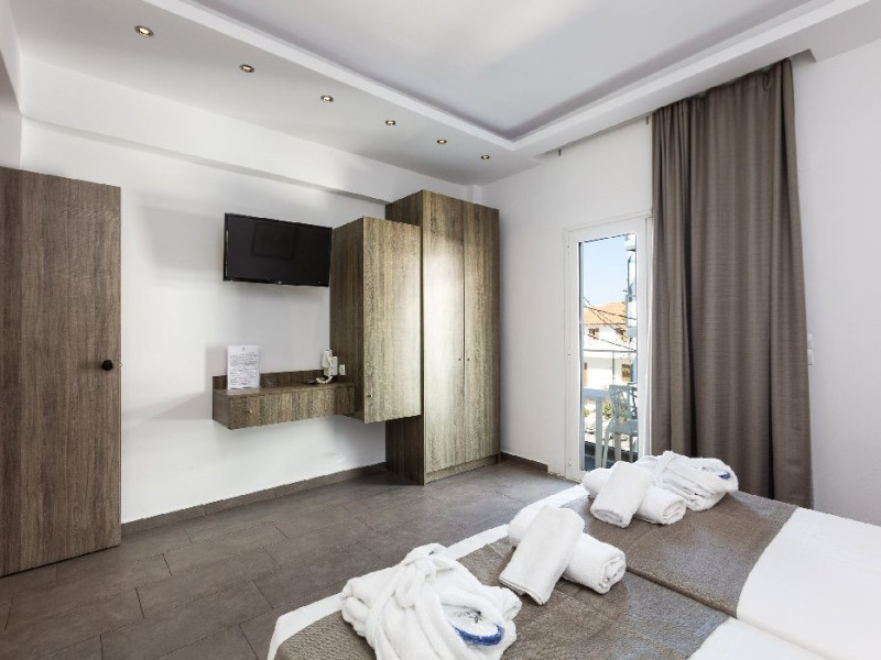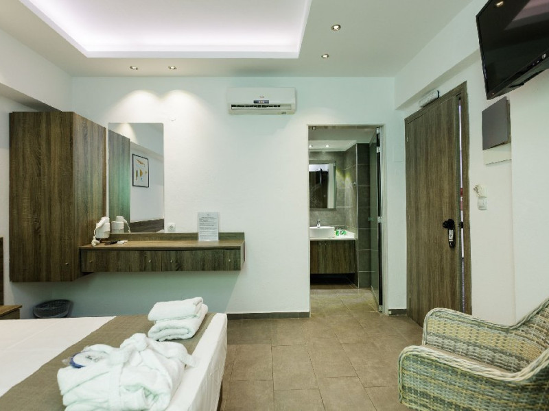 Inconjurat de o atmosfera vibranta, hotelul ofera oaspetilor sai o varietate de optiuni de relaxare si distractie. In imediata apropiere se afla o multitudine de taverne, gata sa va incante papilele gustative cu delicatese locale si sa va rasfete cu ospitalitatea greceasca autentica.