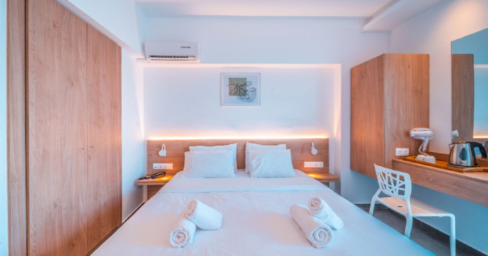 Incorporand farmecul autentic al insulei, locatia sa se gaseste in inima vibranta a statiunii Hersonissos. Cu o pozitie privilegiata chiar pe malul marii, acest hotel impresionant va intampina cu un bar pe plaja, oferindu-va ocazia de a va bucura de rasfatul unei bauturi racoritoare in timp ce ascultati sunetul valurilor. Pentru cei dornici de relaxare totala, centrul spa al hotelului este locul ideal pentru a va revigora simturile si a va rasfata corpul si mintea.