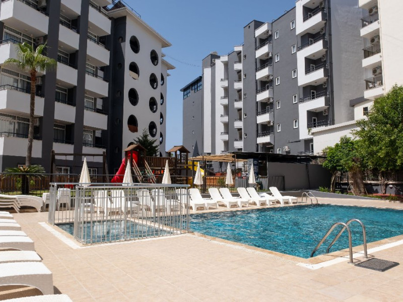 Descriere:Hotelul se afla in Alanya, la 250 de metri de plaja cu nisip si pietricele a statiunii.