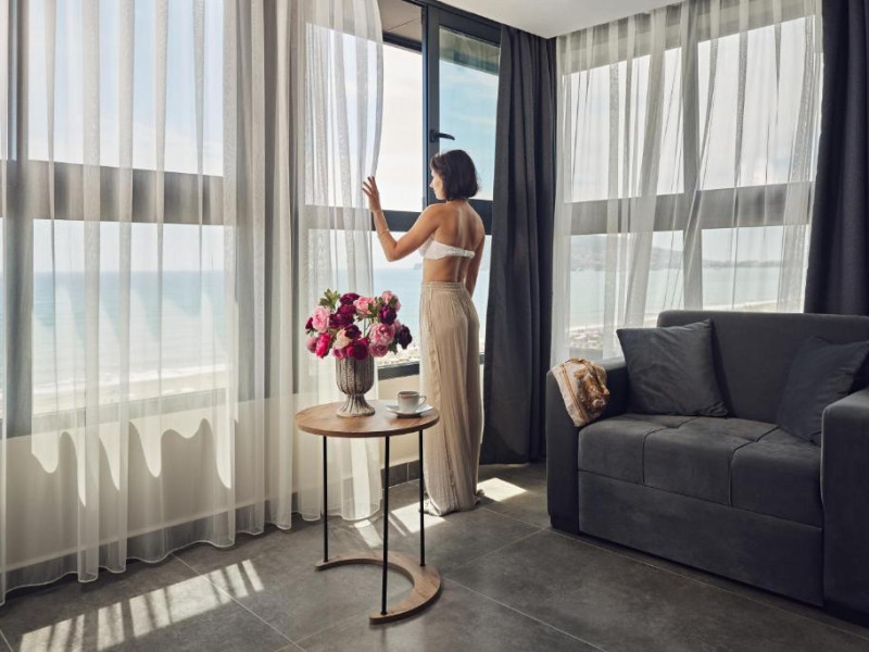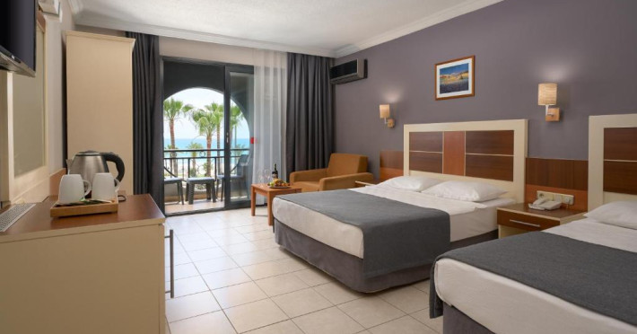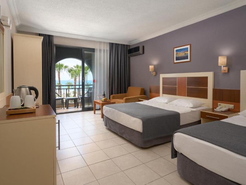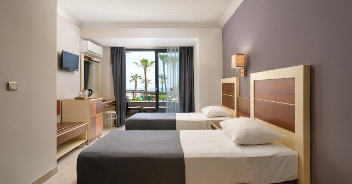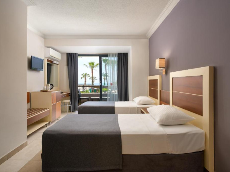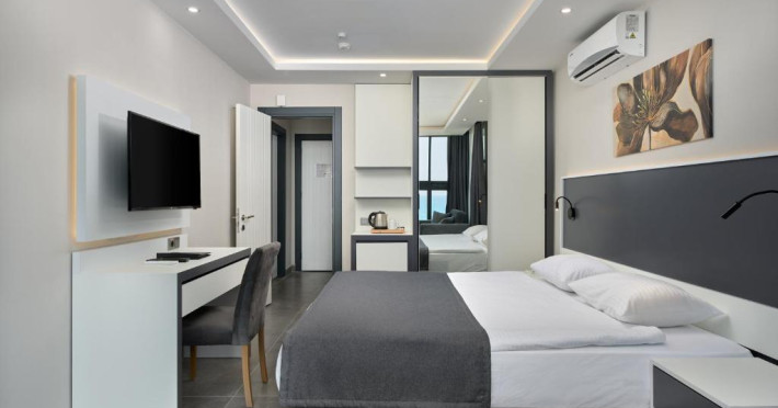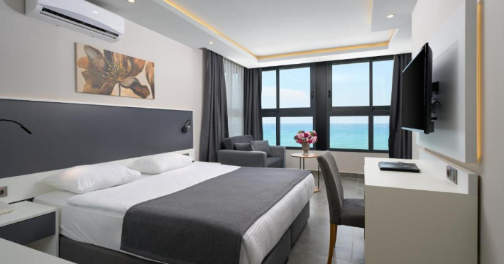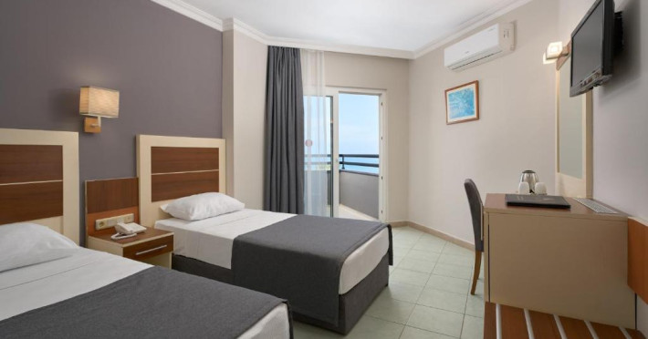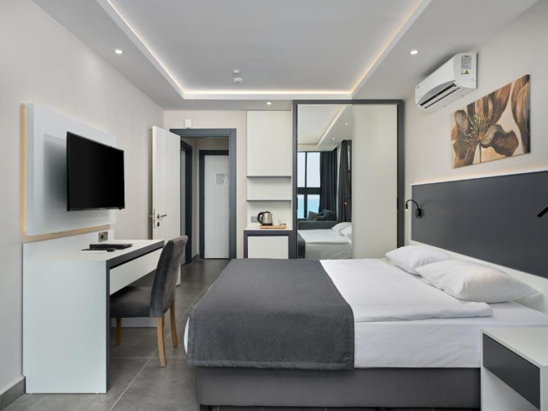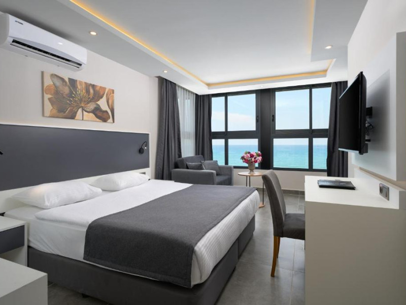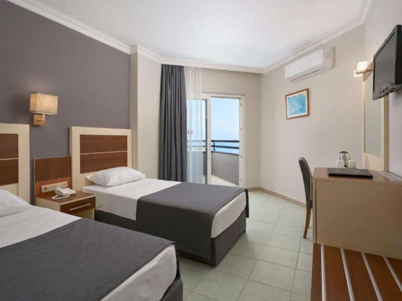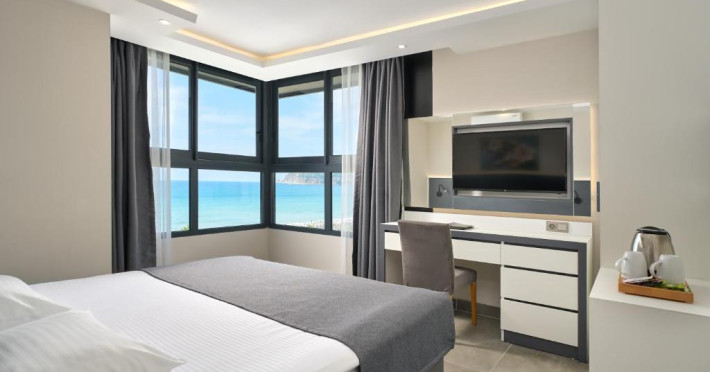 Hotelul are camere moderne cu aer condiționat, TV prin satelit, minibar și seif. Toate camerele au balcon, iar unele oferă vedere la mare sau la piscină.