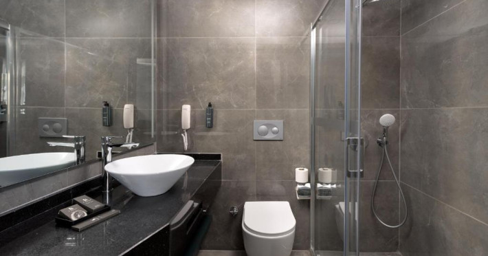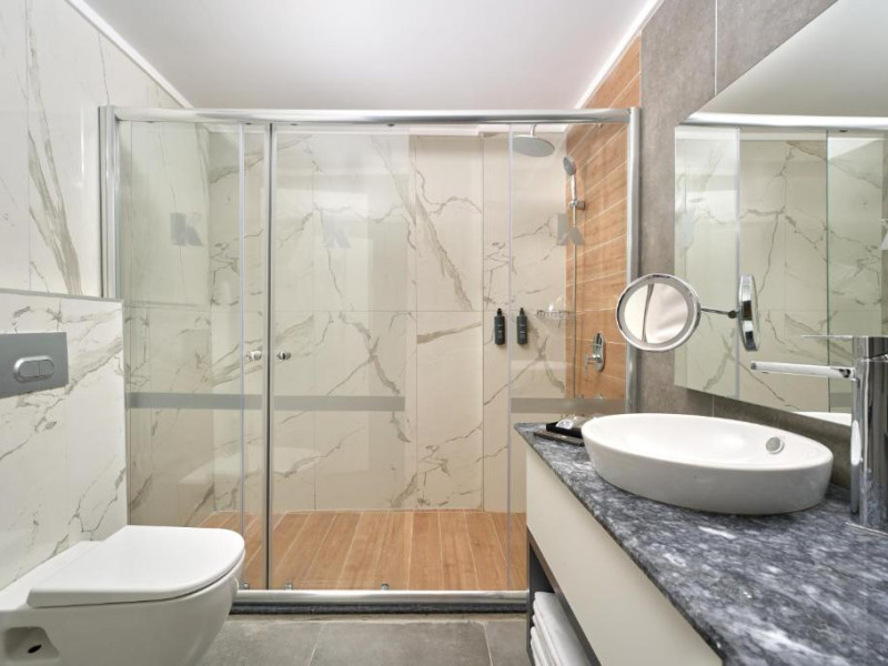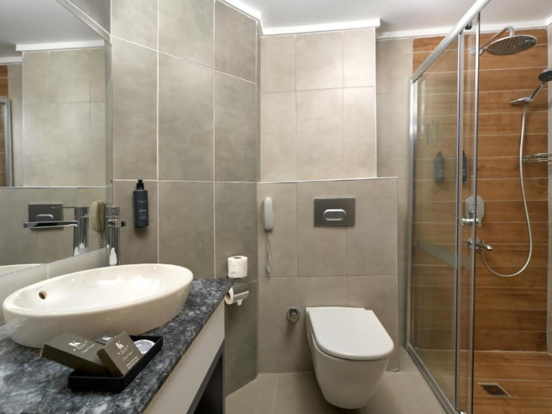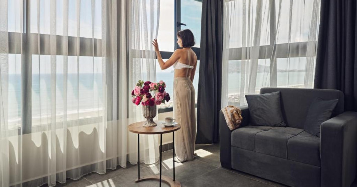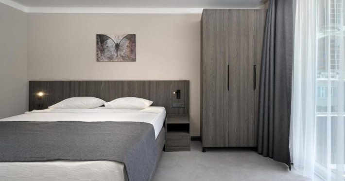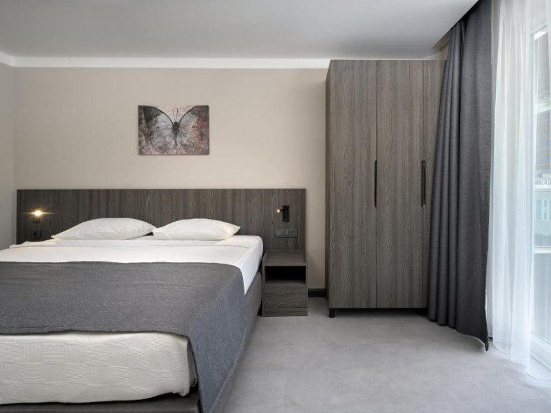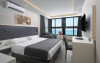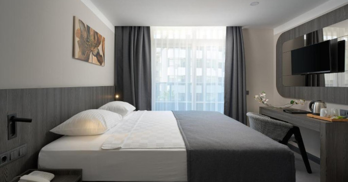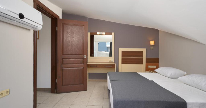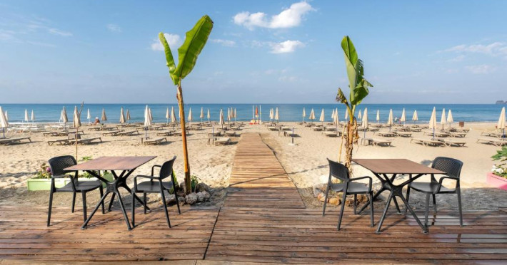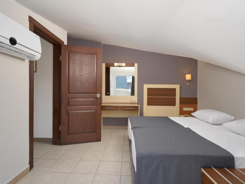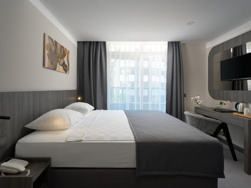 Hotelul are camere moderne cu aer condiționat, TV prin satelit, minibar și seif. Toate camerele au balcon, iar unele oferă vedere la mare sau la piscină.