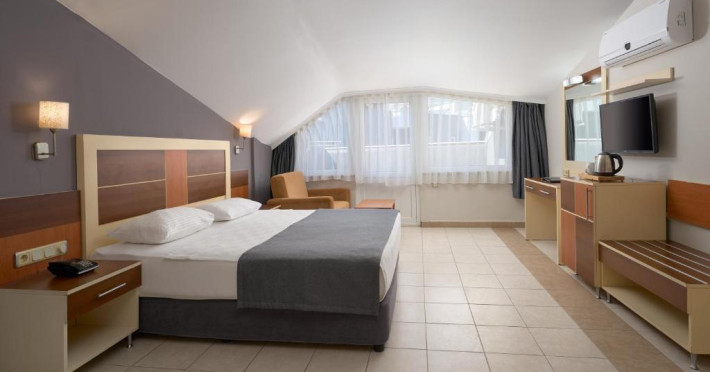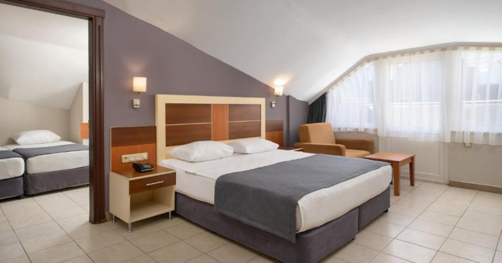Situat in cartierul Oba, Hotelul all-inclusive Kaila Krizantem are o plajă privată cu nisip de-a lungul Mării Mediterane. Hotelul oferă, de asemenea, 3 piscine sezoniere in aer liber, o piscină pentru copii și un tobogan cu apă. Hotelul are un hamam tradițional, o saună și un centru de fitness.