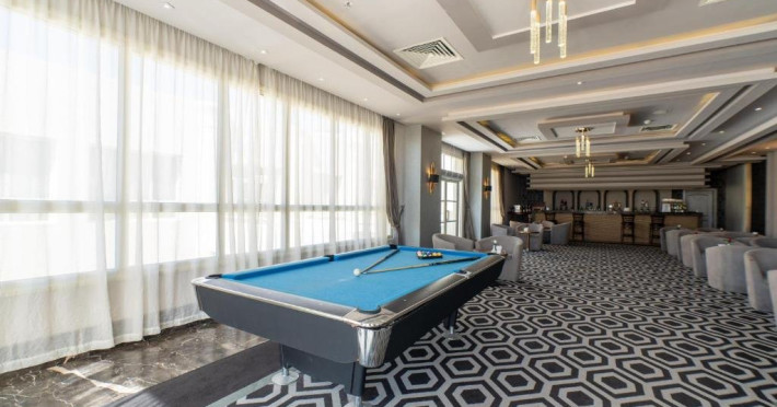 Facilitati hotel: Hotelul pune la dispozitia turistilor: receptie 24h, restaurant principal, restaurante a la carte, divere baruri, club pentru copii, teren de joaca pentru copii, animatori, teren de volei, darts, biliard, 4 piscine, inclusiv aquapark si piscina pentru copii, zona de plaja privata cu sezlonguri si umbrele, divertisment zilnic, scufundari, snorkeling, teren de volei, teren de fotbal, biliard, club.