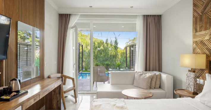 Kairaba Mythos Palace - Adults Only se află la 1 km de Paralia Mpoukari și la 15 km de Palatul Achilleion. Cel mai apropiat aeroport este Aeroportul Internațional Corfu, situat la 27 km de proprietate.
