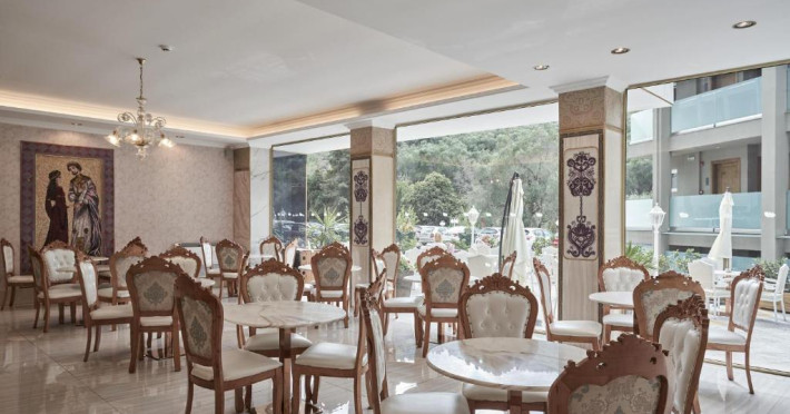 Aflat in Mesongi, la 400 de metri de plaja Boukari, Kairaba Mythos Palace - Adults Only asigură cazare cu un restaurant, un centru de fitness, o piscină sezonieră in aer liber și parcare privată gratuită. Oaspeții au la dispoziție WiFi gratuit, un bar și un teren de tenis. Hotelul oferă o piscină interioară, o saună, o echipă de divertisment și o recepție cu program nonstop.