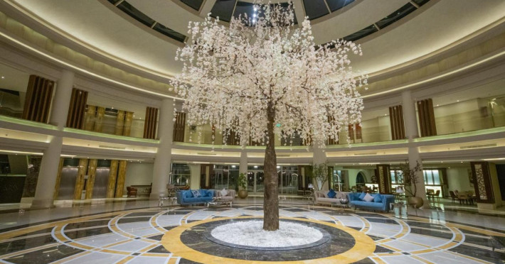 Hotelul pune la dispozitie receptie 24h, lobby, Wi-Fi, bancomat, serviciu de transfer, restaurante cu specific culinar variat, baruri, piscine, sala de fitness, centru Spa, salon de infrumusetare, jacuzzi, aqua park (12 tobogane), polo de apă, teren fotbal, volei de plajă, teren tenis, teren sport, mini-golf, tenis de masă, darts, tir cu arcul, boccia, aerobic, echipă animație, spectacole divertisment.magazine, centru pentru sporturi nautice, plaja proprie.