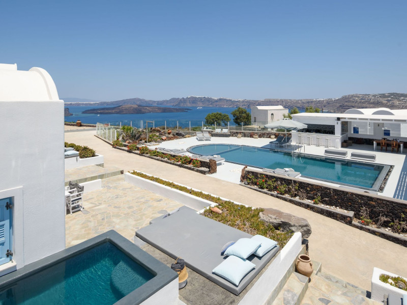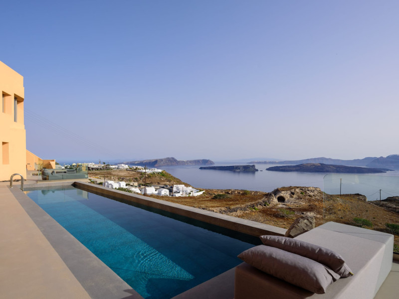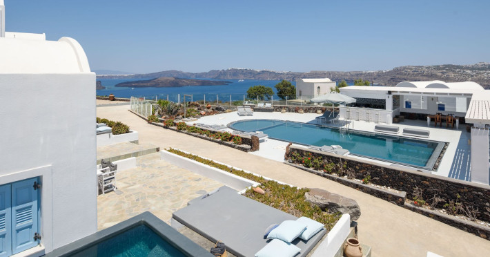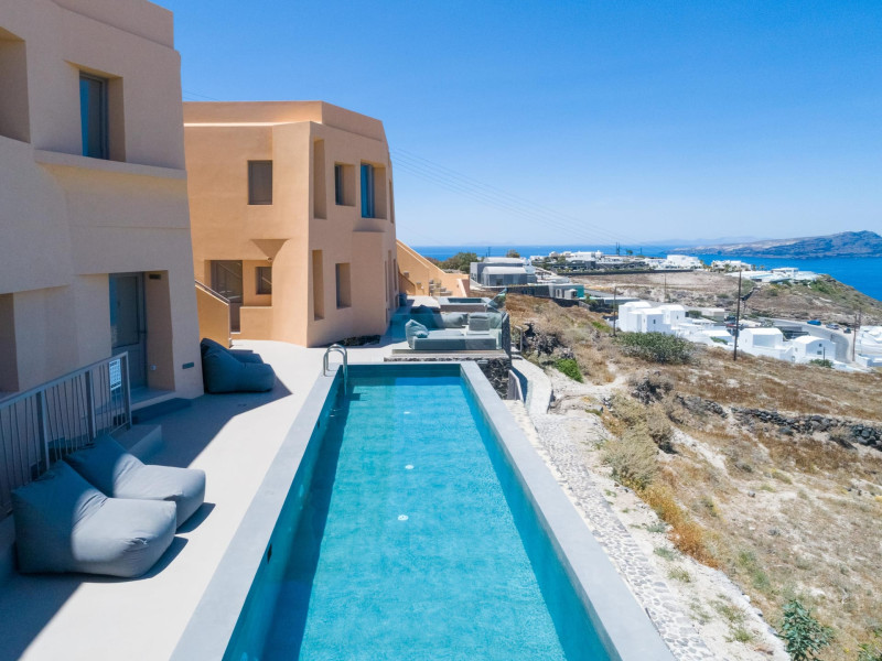 A charming hotel perched on a hilltop in Akrotiri, overlooks the Aegean sea and Caldera.The main pool and bar of the property are available for absolute relaxation, while enjoying the sunny weather, coffee, drinks, refreshments, snacks and a light menu for lunch or dinner and the outstanding view of the two volcanic islands Palia and Nea Kameni.Each suite features spacious bedrooms with comfortable double bed, bathroom with shower, living room with sofa bed that open up to a private veranda or balcony with unique views to the deep blue Aegean sea and caldera. The hotel affords guests a seemingly endless choice of exemplary facilities, ensuring a truly memorable stay in the lap of luxury. The main pool for adults and children,gym,wellness options, playroom and pool bar.A private parking area is available at the property and it is complementary for everyone staying at the property.For those who prefer public transportation to explore the beautiful island a bus station is approximately one Km away.Kalestesia Suites is a complex of ten Suites and Maisonettes located at Akrotiri a quiet and calm village less than five minutes walking distance away from the center of the picturesque village where the old Venetian castle stands. Close to the unique red beach the iconic lighthouse and the famous prehistoric settlement which is considered as one of the most important sites in the Aegean. Many hiking paths and a local minimarket is less than one Km away. Kalestesia is twelve Kms from the island's capital, Fira. thirteen Kms from Santorini's international airport and ten Kms from the main port Athinios.A charming hotel perched on a hilltop in Akrotiri, overlooks the Aegean sea and Caldera.The main pool and bar of the property are available for absolute relaxation, while enjoying the sunny weather, coffee, drinks, refreshments, snacks and a light menu for lunch or dinner and the outstanding view of the two volcanic islands Palia and Nea Kameni.Each suite features spacious bedrooms with comfortable double bed, bathroom with shower, living room with sofa bed that open up to a private veranda or balcony with unique views to the deep blue Aegean sea and caldera. The hotel affords guests a seemingly endless choice of exemplary facilities, ensuring a truly memorable stay in the lap of luxury. The main pool for adults and children,gym,wellness options, playroom and pool bar.A private parking area is available at the property and it is complementary for everyone staying at the property.For those who prefer public transportation to explore the beautiful island a bus station is approximately one Km away.Kalestesia Suites is a complex of ten Suites and Maisonettes located at Akrotiri a quiet and calm village less than five minutes walking distance away from the center of the picturesque village where the old Venetian castle stands. Close to the unique red beach the iconic lighthouse and the famous prehistoric settlement which is considered as one of the most important sites in the Aegean. Many hiking paths and a local minimarket is less than one Km away. Kalestesia is twelve Kms from the island's capital, Fira. thirteen Kms from Santorini's international airport and ten Kms from the main port Athinios.