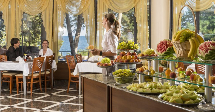 La Kaliakra Palace oaspeții au la dispoziție 3 restaurante unde pot savura mâncăruri delicioase, în stil bufet sau à la carte. Preparate din bucătăria internațională și preparate pescărești așteaptă să fie degustate în fiecare zi la micul dejun, prânz și cină. Masa poate fi servită atât în interior, cît si în aer liber, pe terasă, în funcție de vreme. 4 baruri, dintre care unul la piscină, sunt disponibile cu o ofertă variată de băuturi răcoritoare și alcoolice.