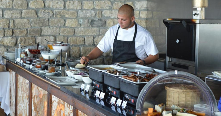 La Kaliakria Resort Aparthotel oaspeții au la dispoziție 3 restaurante unde pot savura mâncăruri delicioase à la carte. Preparate din bucătăria internațională și mediteraneană așteaptă să fie degustate în fiecare zi. Pizza este de asemenea o opțiune culinară pentru cei gurmanzi. Masa poate fi servită atât în interior, cît si în aer liber, pe terasă, în funcție de vreme. Oaspeţii pot avea diverse băuturi răcoritoare sau alcoolice la bar.