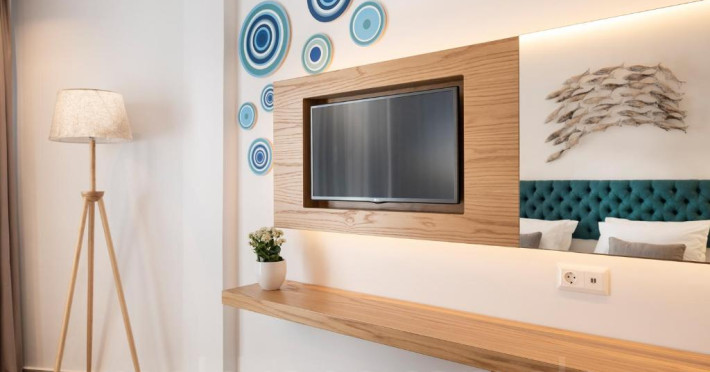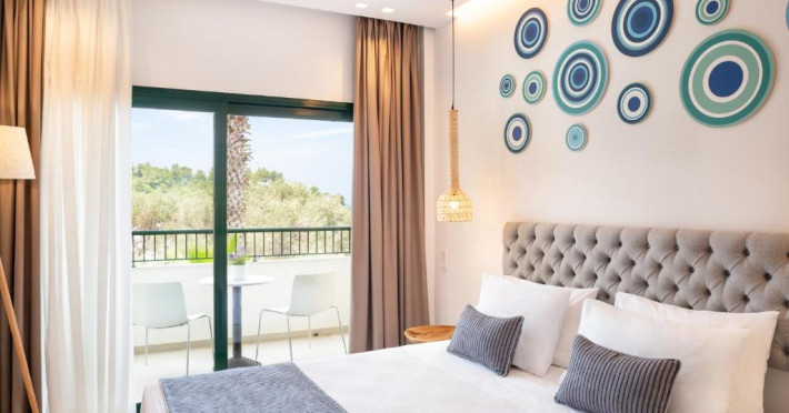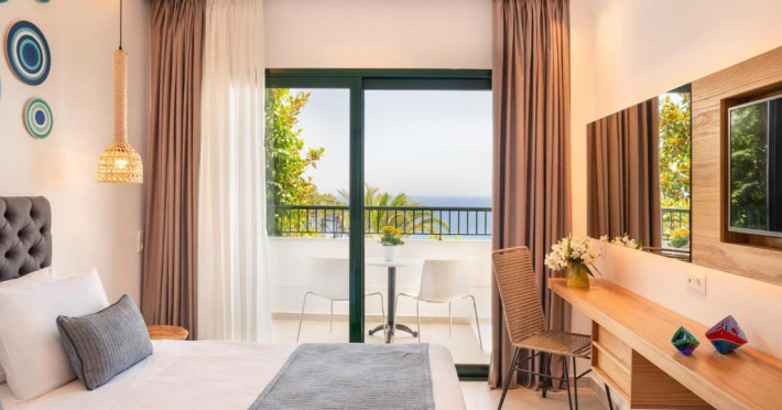 Cu balcon mobilat, cu vedere la mare sau la grădină, fiecare cameră de la Kalidon Panorama este echipată cu aer condiționat, TV cu canale muzicale prin satelit, minibar și seif și oferă un serviciu zilnic de menajeră. Băile sunt dotate cu uscător de păr.