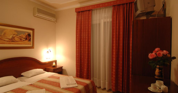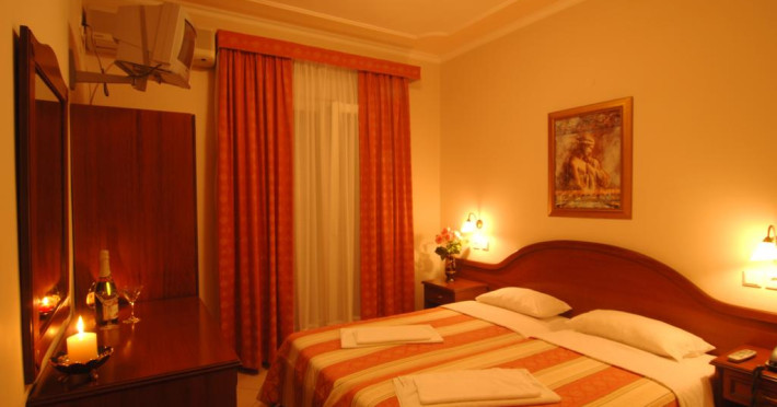 Fiecare cameră dispune de cană-fierbător. Unele camere au balcon, cu vedere la grădină, unde oaspeții se pot relaxa în compania celor dragi. Camerele confortabile de la Kalipso Resort au pardoseală de gresie/ marmură, aer condiționat și Tv cu canale prin satelit. În camere există baie cu cadă sau duș ce are în dotare foehn și articole de toaletă gratuite. Oaspeții au acces gratuit la serviciul Wi-fi în camere. Curățenia in cameră se face zilnic. Fiecare unitate de cazare are frigider. Proprietatea oferă camere pentru nefumători.