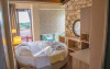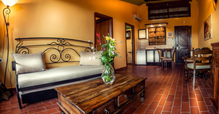 Camerele confortabile de la Kallisti Apart Hotel au pardoseală de gresie/ marmură, aer condiționat, Tv cu canale prin satelit și seif. În camere există baie cu cadă sau duș ce are în dotare foehn și articole de toaletă gratuite. Fiecare cameră dispune de minibar. Oaspeții pot solicita serviciul de room service pentru a servi masa sau diverse băuturi. Unele camere au balcon cu vedere la mare, unde oaspeții pot admira apusul sau răsăritul soarelui. Oaspeții au acces gratuit la serviciul Wi-fi în camere. Anumite camere au zonă de relaxare cu canapea și cadă cu hidromasaj care asigură un plus de confort și răsfăț. Fiecare unitate de cazare include o chicinetă utilată cu frigider, plită de gătit și ustensile de bucătărie. De asemenea, este disponibilă o zonă de luat masa. Proprietatea oferă camere pentru familie cu o suprafață mai mare și un număr mai mare de paturi față de cele standard.