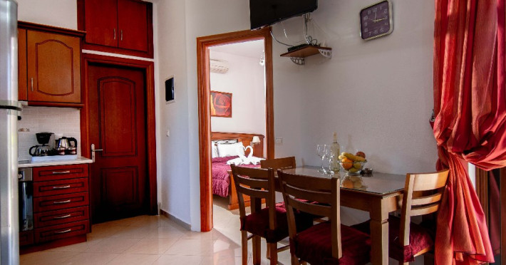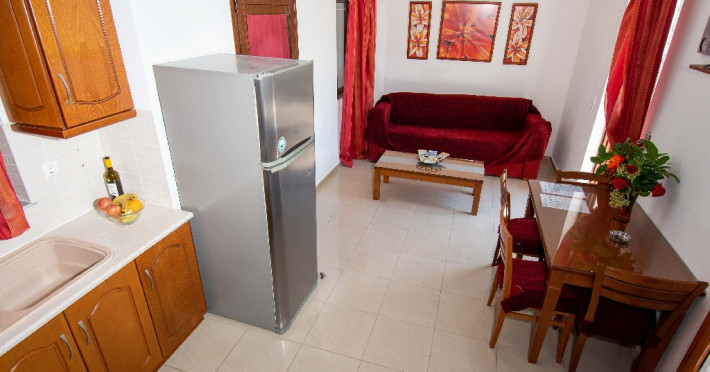 Facilitati camere: In incinta resortului veti gasi apartamente downstairs si apartamente upstairs. Ambele tipuri de apartamente sunt mari si spatioase (42mp) cu un dormitor si o zona pentru relaxare, singura diferenta intre cele doua este ca apartamentele downstairs sunt situate la demisol, iar apartamentele upstairs sunt situate la etaj. Capacitatea maxima admisa in camere este de 4 persoane.