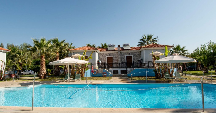 Localizare: Hotelul este amplasat pe plaja la aproximativ 4 km (7 minute de mers cu masina) de statiunea Skala Kalloni si de plaja cu acelasi nume. Distanta pana la aeroportul din Lesbos este de aproximativ 50 km (aprox. 1 ora de mers cu masina) si 55 km de Padurea Pietrificata din Lesbos (aprox. 1 ora de mers cu masina).