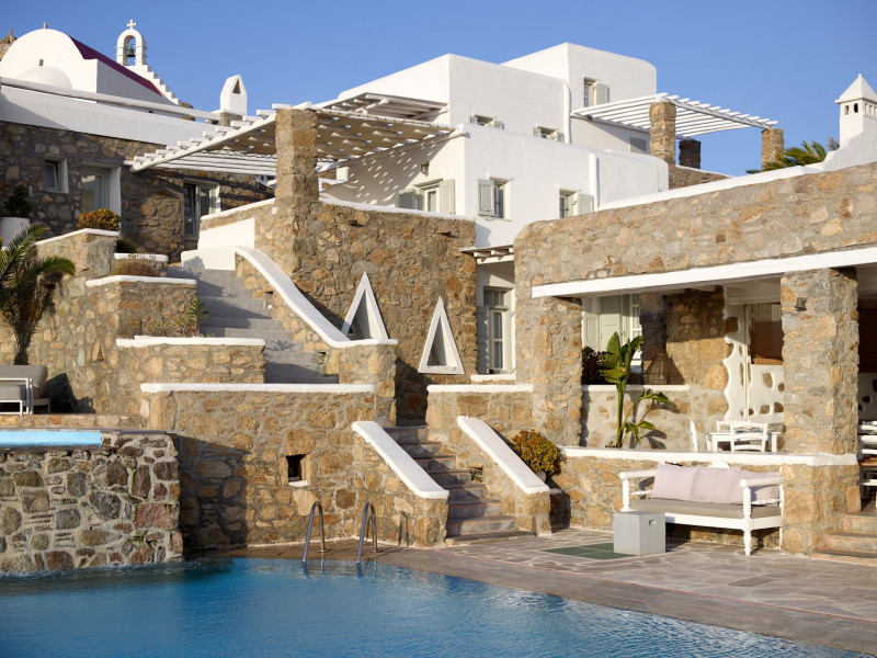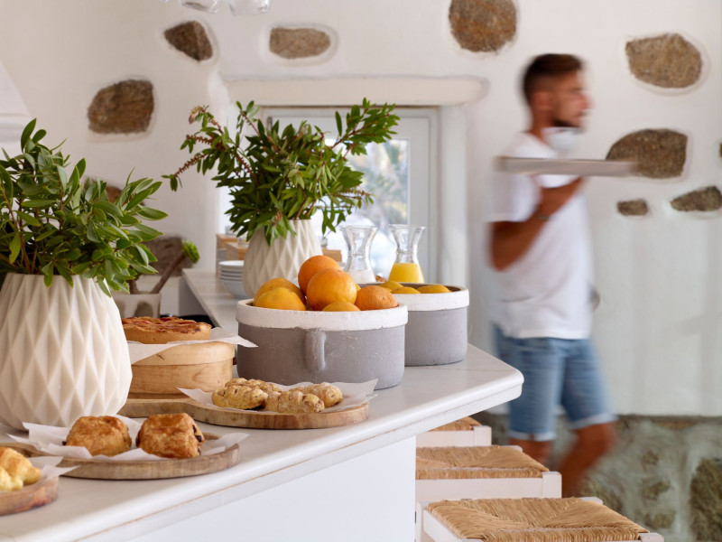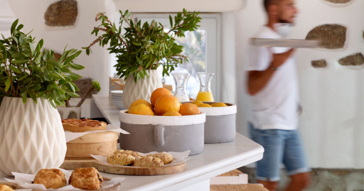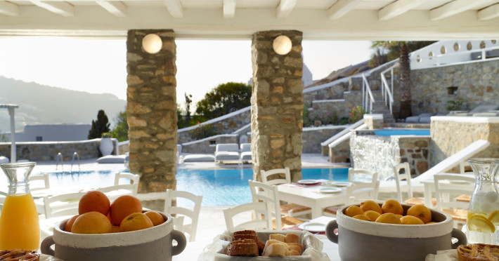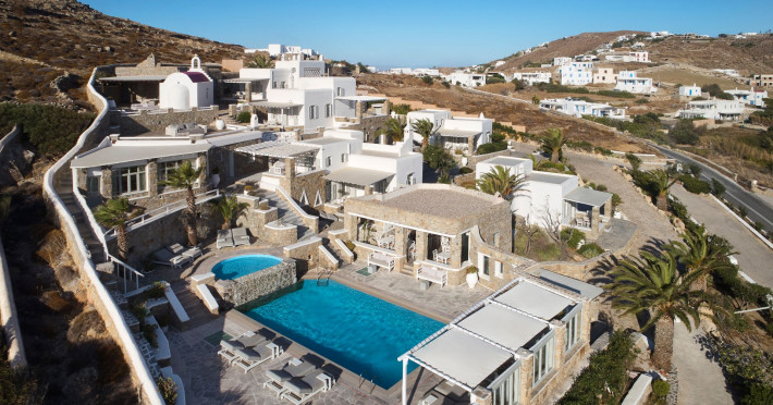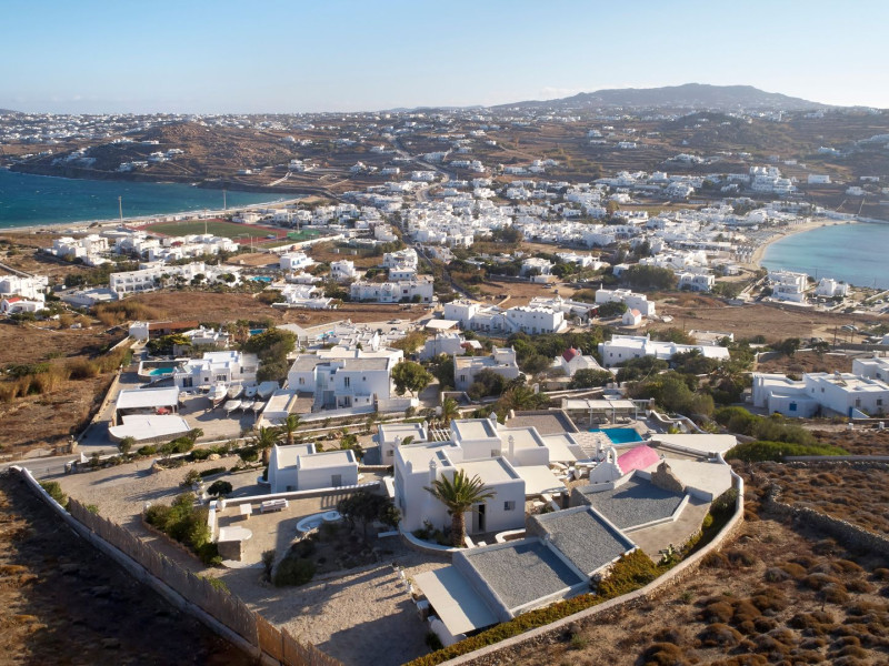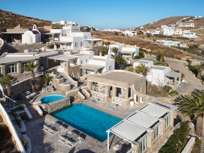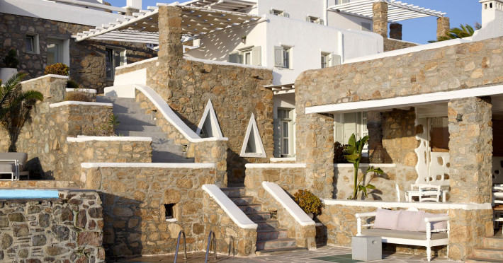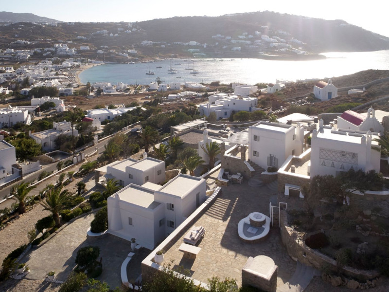 Kallos of Mykonos is a complex of houses and studios, built according to the traditional Mykonian architecture in a 5000 square meters field. It is constructed in uneven levels, so that all buildings have unobtrusive sea view to Ornos beach, Korfu beach and the town of Mykonos. All houses and studios have a private veranda, are spacious and equipped with comfortable signature beds, flat screen, cable TV, free wi-fi, kitchen and living room. The area of the pool and the hydro-massage offers its guests with comfortable sun beds and an all-day bar, with the breathtaking view of the Aegean Sea as the background, while Ornos beach is within a 10’ walking distance. Inside the complex there is a large garden area, with organic products that are cultivated with the Permaculture technique and are used for the preparation of the homemade breakfast and tasty snacks.Kallos of Mykonos is a complex of houses and studios, built according to the traditional Mykonian architecture in a 5000 square meters field. It is constructed in uneven levels, so that all buildings have unobtrusive sea view to Ornos beach, Korfu beach and the town of Mykonos. All houses and studios have a private veranda, are spacious and equipped with comfortable signature beds, flat screen, cable TV, free wi-fi, kitchen and living room. The area of the pool and the hydro-massage offers its guests with comfortable sun beds and an all-day bar, with the breathtaking view of the Aegean Sea as the background, while Ornos beach is within a 10’ walking distance. Inside the complex there is a large garden area, with organic products that are cultivated with the Permaculture technique and are used for the preparation of the homemade breakfast and tasty snacks.