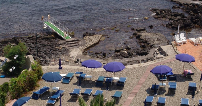 Plaja: privata cu stanci in fata hotelului, amenajata cu umbrele si sezlonguri