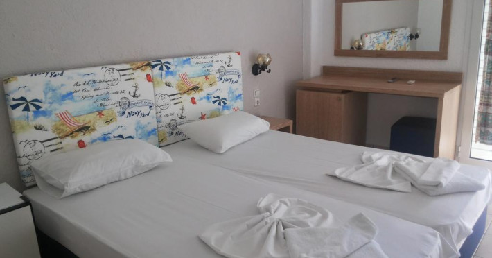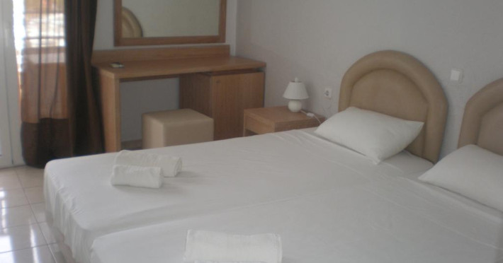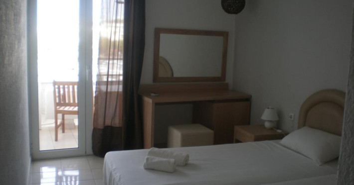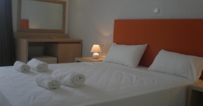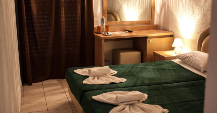 Camerele confortabile de la Kalypso Hotel sunt dotate cu pardoseală de gresie/ marmură, aer condiționat, Tv și seif. Fiecare cameră dispune de minibar. Oaspeții pot solicita serviciul de room service pentru a servi masa sau diverse băuturi. În camere există baie cu cadă sau duș ce are în dotare foehn și articole de toaletă gratuite. Camerele au balcon cu vedere la mare sau la oraș, unde oaspeții pot admira apusul sau răsăritul soarelui. Oaspeții au acces gratuit la serviciul Wi-fi în camere. Curățenia in cameră se face zilnic. Proprietatea oferă camere pentru nefumători.