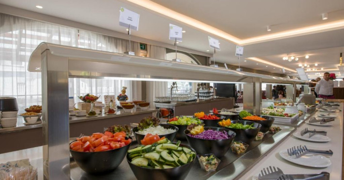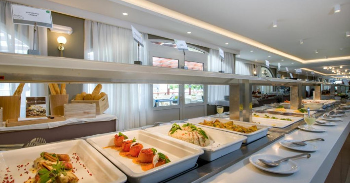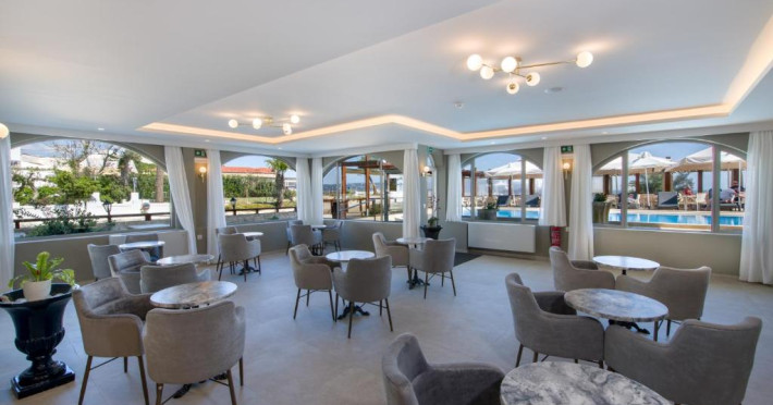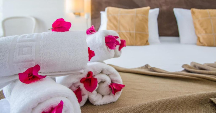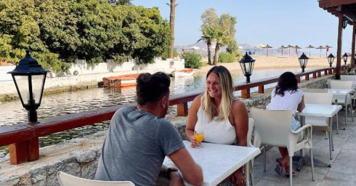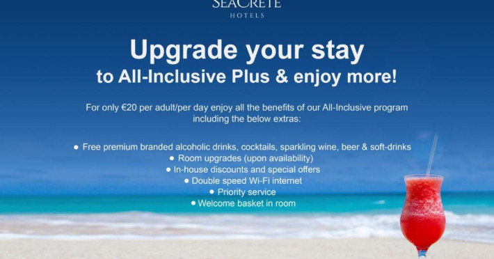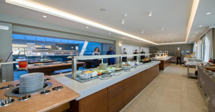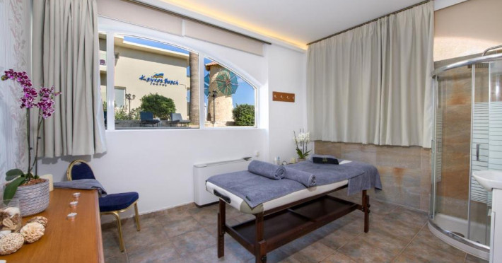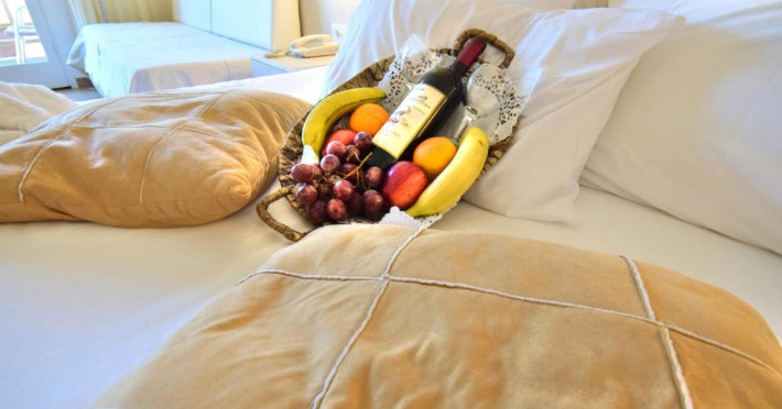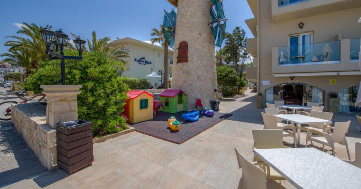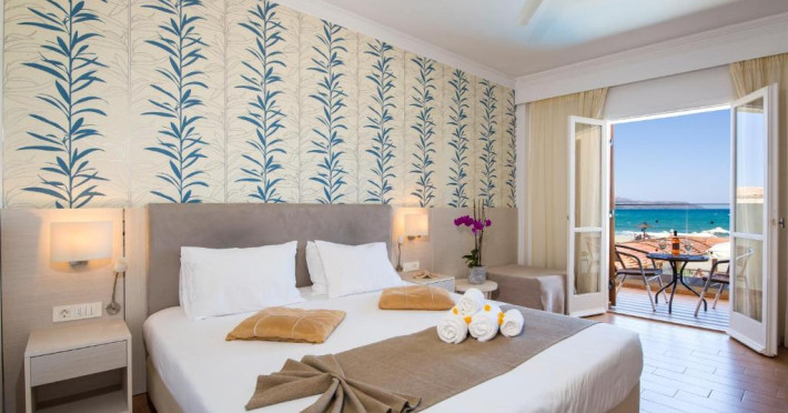 An American buffet breakfast is served in the hotel's restaurant's breakfast room or on the veranda, just a few steps from the seafront. For a perfect evening, guests can enjoy a romantic candlelit dinner accompanied by a bottle of wine from the Kalyves Beach Hotel's wine list.