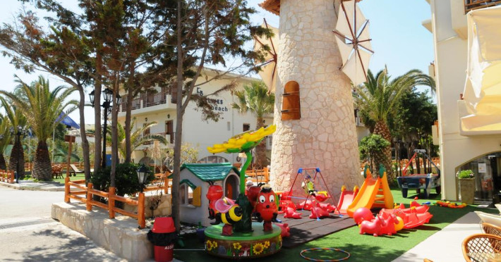 În grădina de la Kalyves Beach există un loc de joacă pentru copii special amenajat. Pentru cei mai mici Kalyves Beach oferă servicii de babysitting.