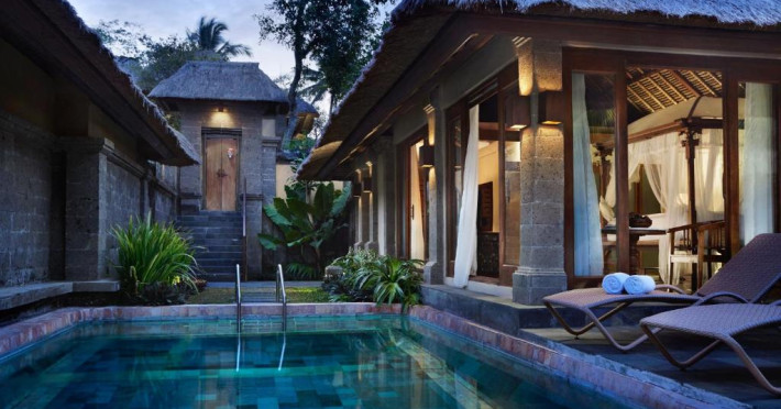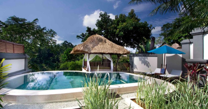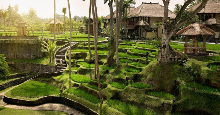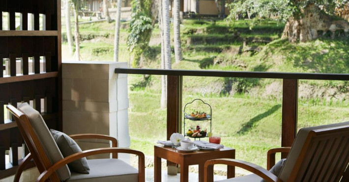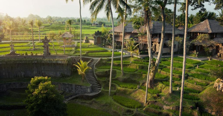 Camerele si vilele au decor inspirat de satele traditionale din Bali și vedere la dealurile și lanurile de orez din jur. Toate unitătile au acoperis din stuf, interioare spatioase si facilităti de 5 stele. Majoritatea au TV cu ecran plat, canapea in stil balinez si piscină privată.
