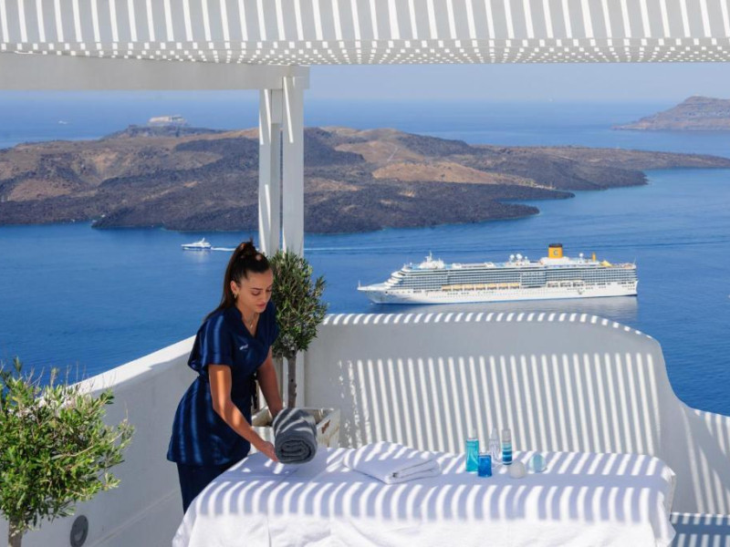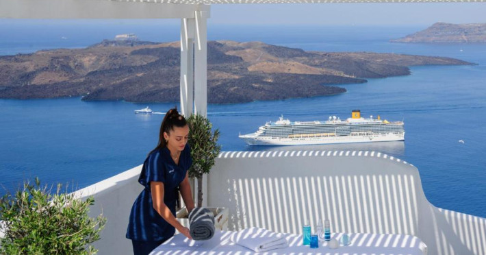 Datorită locatiei sale privilegiate, Kamares oferă vedere la Marea Egee, la vulcan, la insula Thirasia si la celebrul apus de soare care poate fi admirat de pe insula Santorini. Personalul și proprietarii sunt la dispoziția oaspeților pe tot parcursul sejurului.