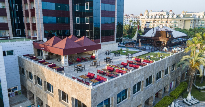 Hotelul pune la dispozitia oaspetilor: restaurant principal, restaurante a la carte, baruri, piscina exterioara, piscina interioara, aquapark, animatie, discoteca, mini si junior club, tenis, fotbal, volei pe plaja, aerobic, centru fitness.