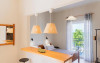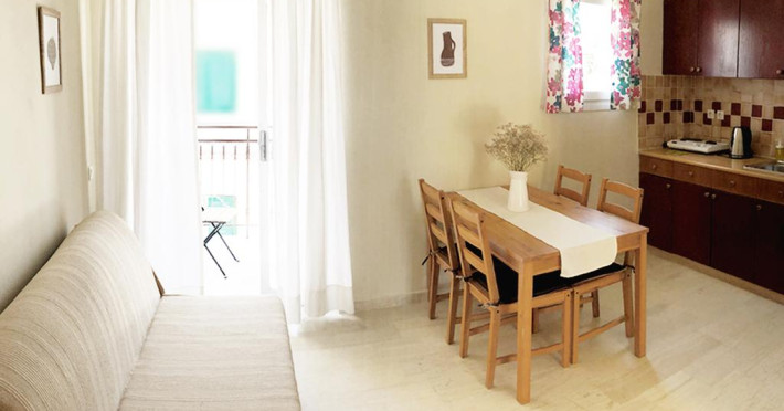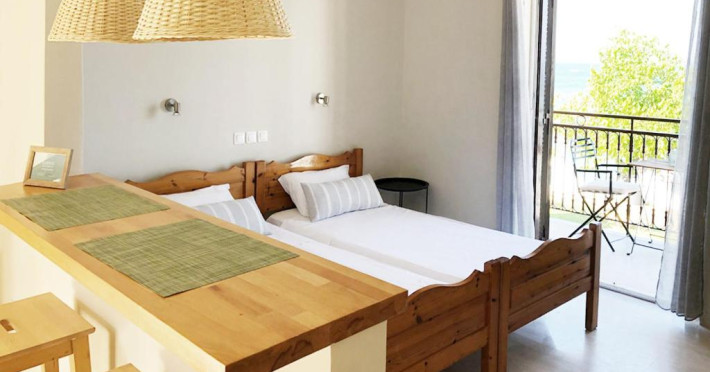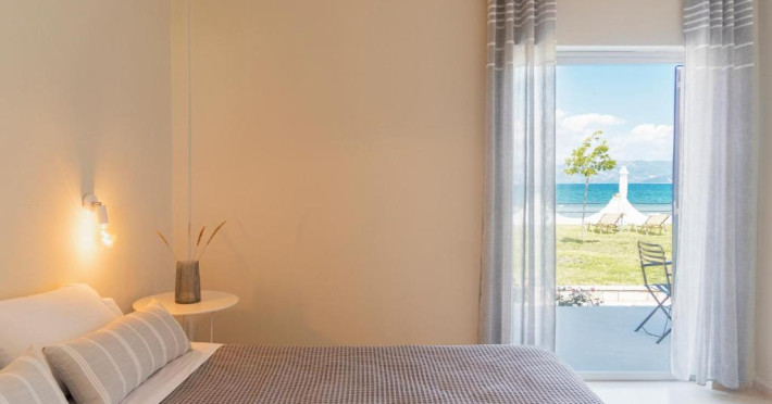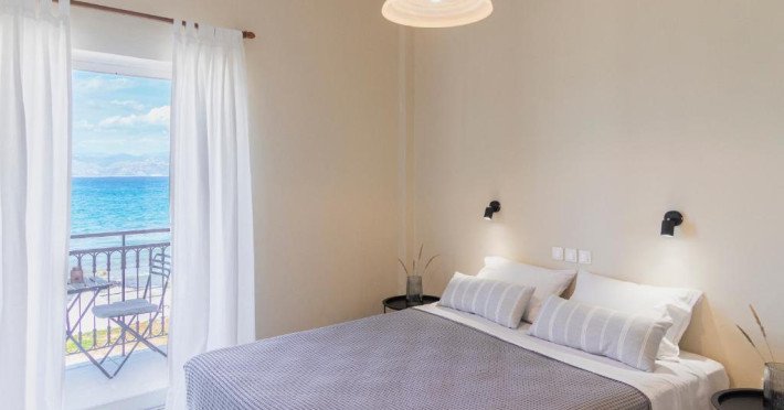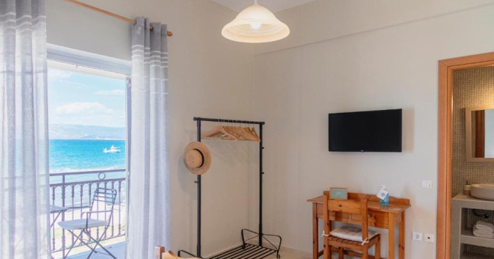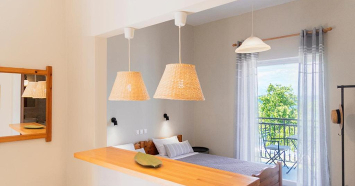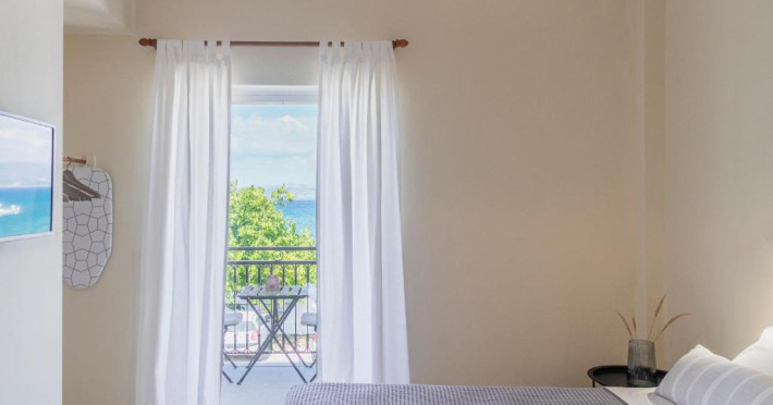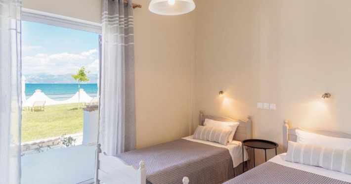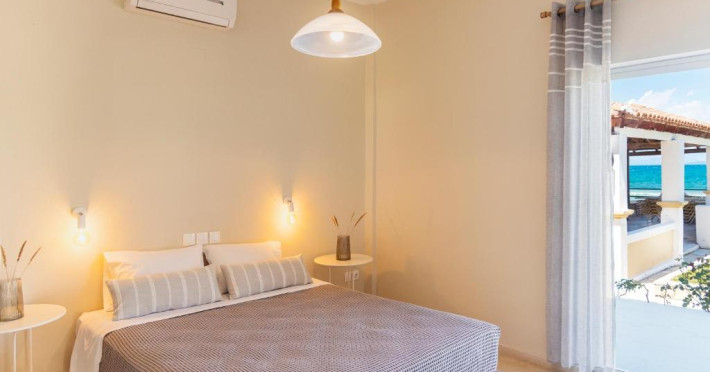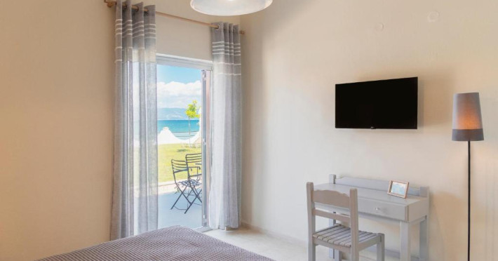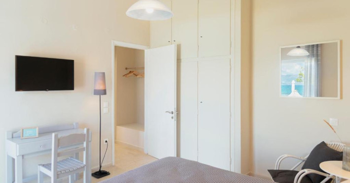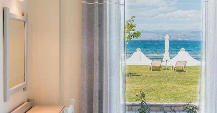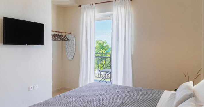 Localizare: situat la malul mării, 1 km de plaja Kavos. Aeroportul Ioannis Kapodistrias este situat la 29 km iar portul Lefkimmi la doar 3.8 km.