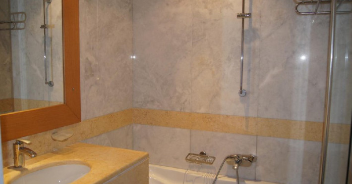 2 apartamente standard: au dormitor si loc de recreere, in plan deschis. Apartamentele au podele de marmura, mobila eleganta si vedere la mare.