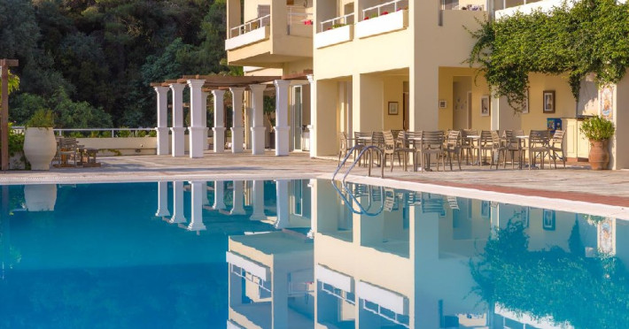 Facilitati: Hotelul dispune de o gama larga de dotari printre care se numara: piscina exterioara, piscina pentru copii, un centru SPA, bar la piscina unde se pot servii cocktailuri racoritoare, restaurant cu preparate grecesti si sau internationale, serviciul de rent a car, internet, business center si parcare privata, dar si sali in care se pot organiza conferinte si simpozioane.