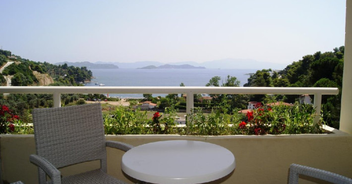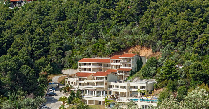 Localizare: Hotelul este situat la aproximativ 7 km departare de aeroportul Skiathos, aproximativ la jumatatea drumului dintre oras si plaja Koukounaries, in zona omonima. Amplasat pe un deal pitoresc de pini si maslini, deasupra plajei Tzaneria ofera panorame spectaculoase turistilor, indiferent de camera in care sunt cazati. Managmentul foarte bun, amplasarea si serviciile de cea mai buna calitate au adus acestui hotel un Certificat de excelenta Tripadvisor in anul 2012.