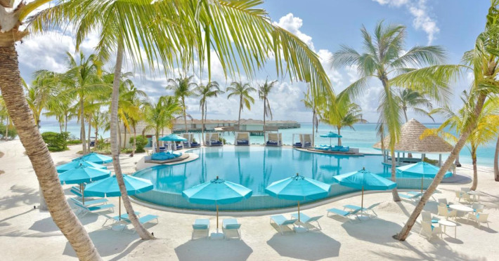 Situat pe cea mai mare insulă din atolul Dhaalu, Kandima Maldives pune la dispoziție numeroase sporturi nautice, cel mai mare club de plajă şi terenuri de tenis şi baschet. Situat la un zbor de 45 de minute de Male, urmat de o plimbare de 20 de minute cu barca pe insulă, complexul are studiouri și vile cu terasă privată și piscină privată. Acestea are vedere tropicală infinită.