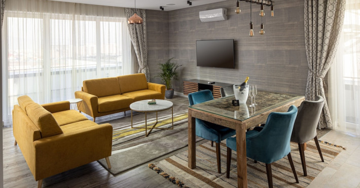 Located 886 feet from the Coresi Shopping Resort and 3.1 mi from Council Square, Kanopian Penthouse Brasov provides accommodations in the heart of BraÅov. Free WiFi is offered at the property. The accommodations comes with a flat-screen TV and a private bathroom with shower and free toiletries, while the kitchen has a Nespresso machine with complimentary coffee and a dishwasher. All units have a seating area and/or a terrace. The aparthotel offers a childrens playground and a complimentary bottle of sparkling wine with homemade Belgian chocolate. A car rental service is available at Kanopian Penthouse Brasov Paradisul Acvatic is 2.2 mi from the accommodations, while BraÅov Adventure Park is 6.2 mi from the property.WiFi is available in the hotel rooms and is free of charge. Free private parking is available on site (reservation is not needed). Pets are allowed on request. Charges may apply. Children of all ages are allowed. Children 17 and under stay for 150Â lei per person, per night when using an existing bed. You havent added any cribs. You havent added any extra beds. Additional fees are not calculated automatically in the total cost and will have to be paid for separately during your stay.Checkin Time: 15:00Checkin End Time: 22:00Checkout From: 07:00Checkout End Time: 11:00Hotel important information: This property does not accommodate bachelor(ette) or similar parties. In response to the coronavirus (COVID-19), additional safety and sanitation measures are in effect at this property. Please inform Kanopian Penthouse Brasov of your expected arrival time in advance. You can use the Special Requests box when booking, or contact the property directly using the contact details in your confirmation. A damage deposit of RON 1000 is required on arrival. This will be collected by credit card. You should be reimbursed within 14 days of check-out. Your deposit will be refunded in full by credit card, subject to an inspection of the property.Datorita dinamicitatii domeniului disponibilitatea ofertelor se modifica de la un moment la altul. De aceea ofertele sunt valabile in limita locurilor disponibile. Agentia nu este responsabila pentru eventualele neconcordante care pot aparea intre informatiile privind tarifele si alte detalii din site si informatiile primite in agentie. In aceste cazuri vor avea prioritate, intotdeauna, informatiile primite in agentie.