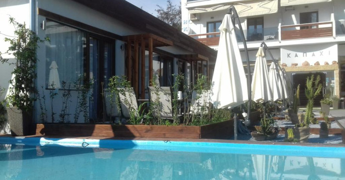 La Kapahi Beach Hotel oaspeții au la dispoziție un restaurant care servește mâncare à la carte. Preparate din bucătăria grecească așteaptă să fie degustate în fiecare zi. Masa poate fi servită atât în interior, cît si în aer liber, pe terasă, în funcție de vreme.