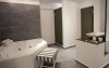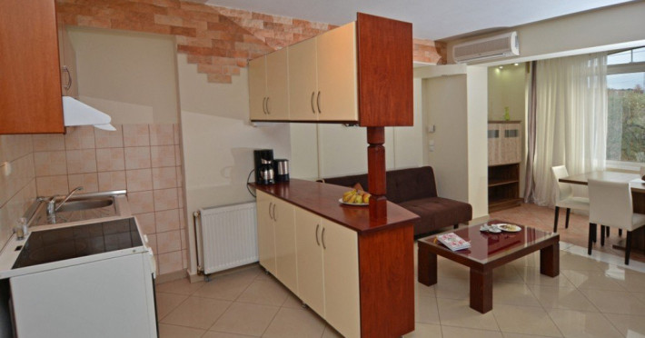 Mai sunt si 2 apartamente de lux, la parter. Fiecare apartamnet are dormitor cu un pat matrimonial si o sufragerie cu o canapea extensibila dubla. Apartamentele au ferestre mari, o chicineta bine echipata si baie cu dus.