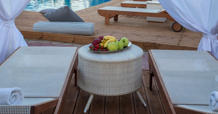 Cele mai spatioase sunt Suitele care sunt la nivelul gradinei. Fiecare Suita are jacuzzi, un pat dublu king size, o canapea dubla si o canapea extensibile de o persoana. Acestea au un balcon mare si o chicineta bine echipata, baie de servici si baie cu dus.