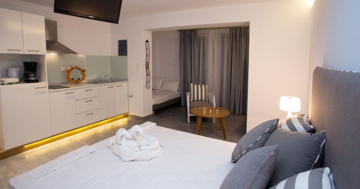 Kapahi Sea View Apartments & Suites are located in a ideal spot in Potos, one of the most famous villages of South Thassos. Most of the apartments have a breathtaking view to the Aegean Sea and only few minutes walking from the sandy beach.