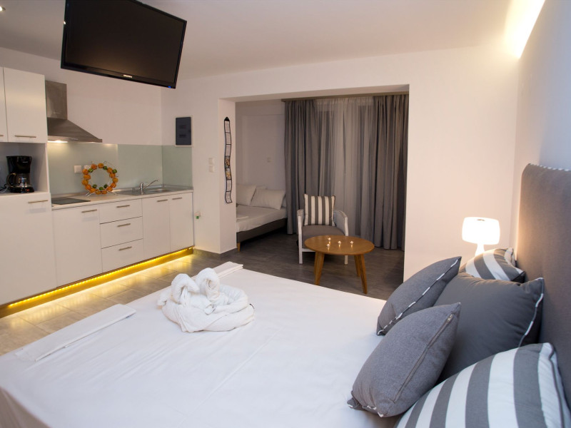 All units have kitchenette, large modern rooms and balconies. Our low depth swimming pool, is an exceptional idea for the afternoon litte swimmers.