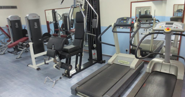 O sală de fitness cu echipamente necesare pentru o gamă variată de exerciții fizice este la dispoziția celor interesați.