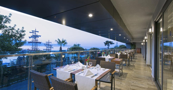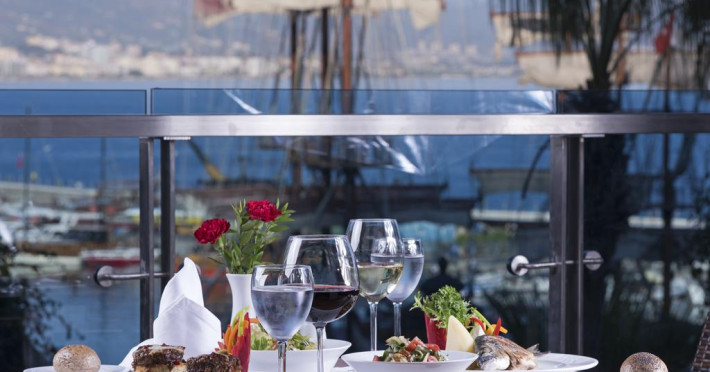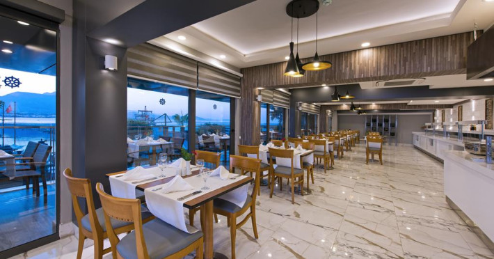 La Kaptan Hotel oaspeții au la dispoziție un restaurant care servește mâncare în stil bufet și à la carte. Preparate din bucătăria internațională așteaptă să fie degustate în fiecare zi la micul dejun, prânz și cină. Masa poate fi servită atât în interior, cît si în aer liber, pe terasă, în funcție de vreme. Oaspeţii pot avea diverse băuturi răcoritoare sau alcoolice la bar. În cadrul proprietății există și un snack bar care servește băuturi și gustări.