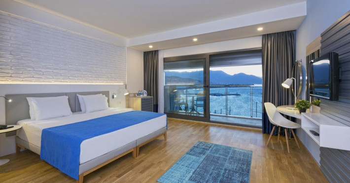 Camerele luminoase de la Kaptan Hotel sunt dotate cu parchet, aer condiționat, Tv cu canale prin satelit și seif. În camere există baie cu cadă sau duș ce are în dotare foehn și articole de toaletă gratuite. Unele camere au balcon cu vedere la mare sau la piscină. Fiecare cameră dispune de minibar și cană-fierbător. Oaspeții pot solicita serviciul de room service pentru a servi masa sau diverse băuturi. Oaspeții au acces gratuit la serviciul Wi-fi în camere. Curățenia in cameră se face zilnic. Toate camerele spațioase de la Kaptan Hotel au zonă de relaxare. Proprietatea oferă camere pentru familie cu o suprafață mai mare și un număr mai mare de paturi față de cele standard. Se pot rezerva de asemenea camere pentru nefumători.