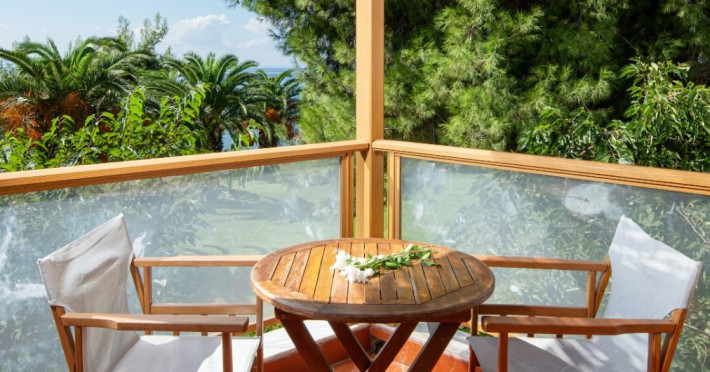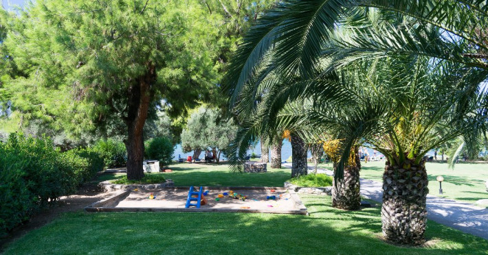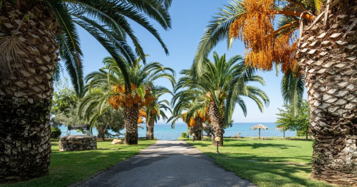 Unele camere au vedere la mare, altele la superba gradina plina de palmieri si maslini.