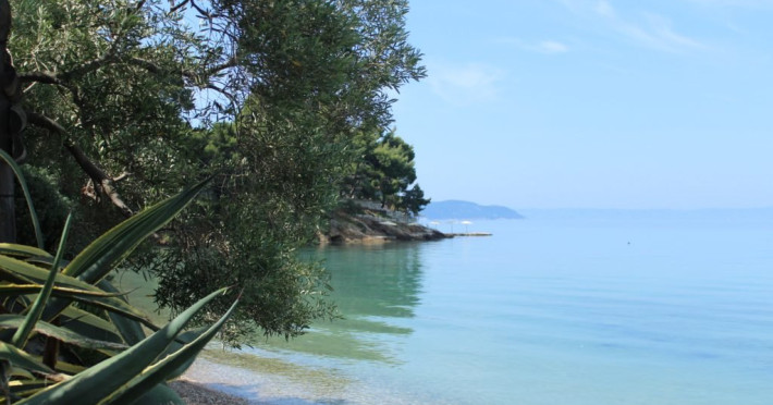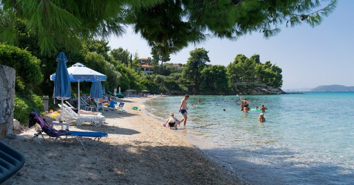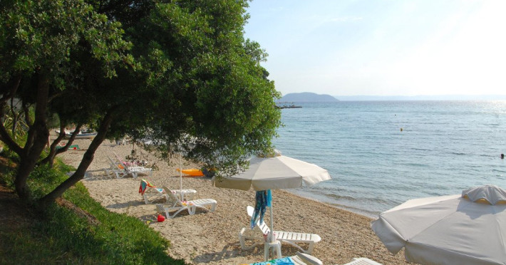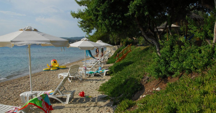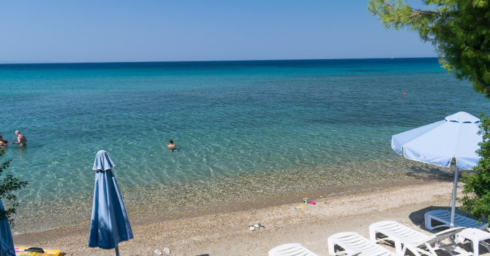 Plaja unitatii de cazare este pietroasa la intrare, dupa care devine nisipoasa.