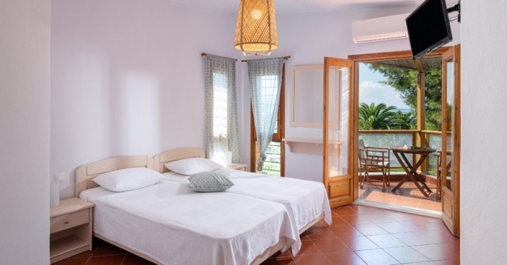 Facilitati camere: Cele 19 camere se impart in: 9 apartamente si 10 studiouri, toate echipate cu: AC, TV, uscator de par, frigider, chicineta, cuptor cu microunde, WiFi, baie cu dus si balcon/veranda.