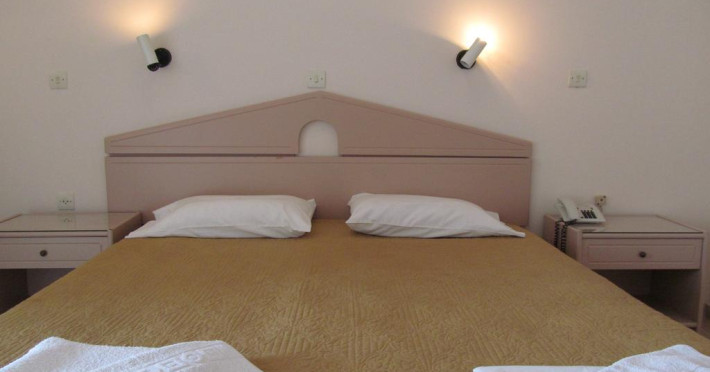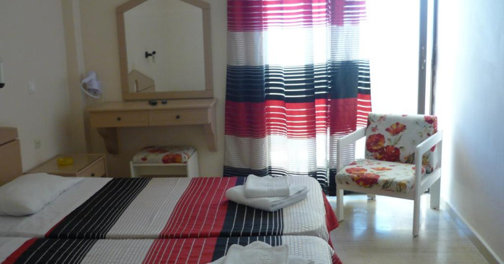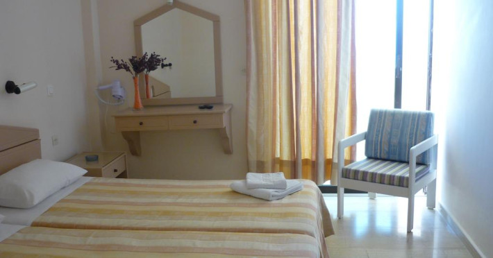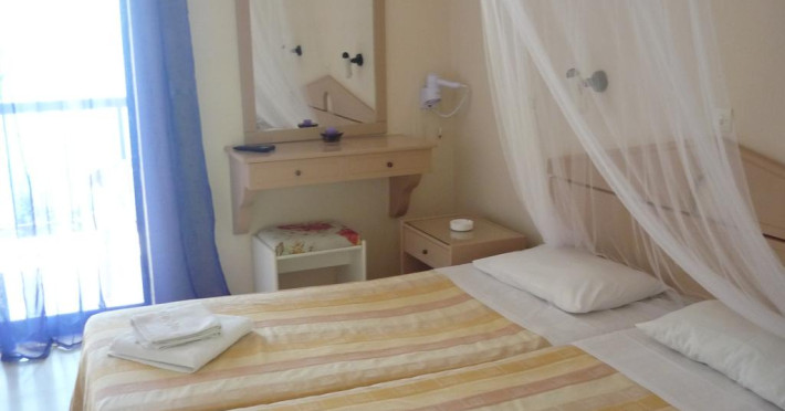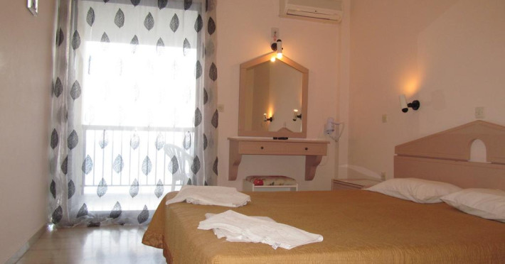 Unele camere au balcon cu vedere la mare, unde oaspeții pot admira apusul sau răsăritul soarelui. În camere există baie cu cadă sau duș ce are în dotare foehn și articole de toaletă gratuite. Camerele luminoase de la Karina Hotel sunt dotate cu aer condiționat, Tv și seif. Oaspeții au acces gratuit la serviciul Wi-fi în camere. Curățenia in cameră se face zilnic. Fiecare unitate de cazare are frigider. De asemenea, este disponibilă o zonă de luat masa. Proprietatea oferă camere pentru familie cu o suprafață mai mare și un număr mai mare de paturi față de cele standard. Se pot rezerva de asemenea camere pentru nefumători.