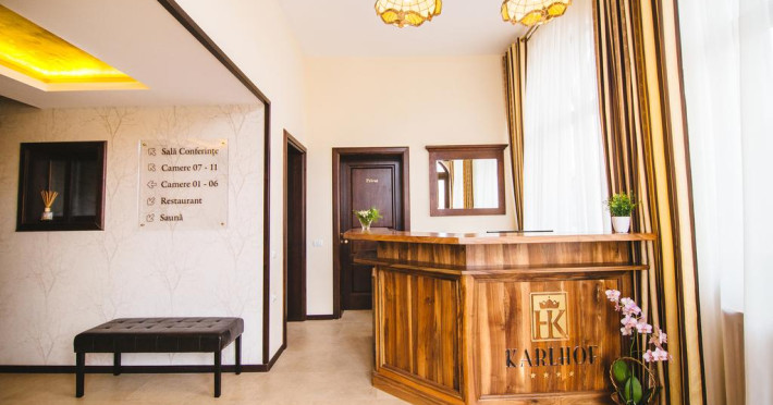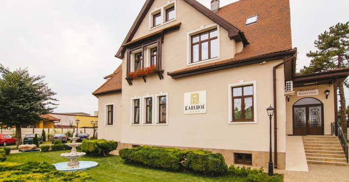 Pensiunea Karlhof se afla la 48 km de oraÅul Sibiu. Facilitati pensiune: receptie non-stop, restaurant, bar, terasa, gradina, seif, aer conditionat, sistem central de incalzire, camera de bagaje, loc de joaca pentru copii, fax/copiator, sala de conferinte si evenimente, menaj zilnic, serviciu de calcatorie (cost suplimentar), spalatorie (cost suplimentar), serviciu de transfer aeroport (cost suplimentar), zona pentru fumatori, camere pentru nefumatori, camere de familie, apartmanent nuptial, salon de infrumusetare, solar, sauna, internet wireless gratuit, parcare gratuita, statie de incarcat vehiculele electrice. Hotelul dispune de 11 camere. Facilitati camere: baie cu cabina de dus cu vibromasaj/cada, produse cosmetice, uscator de par. halatde baie si papuci, TV LCD, telefon, seif, minibar, birou, internet wireless.Datorita dinamicitatii domeniului disponibilitatea ofertelor se modifica de la un moment la altul. De aceea ofertele sunt valabile in limita locurilor disponibile. Agentia nu este responsabila pentru eventualele neconcordante care pot aparea intre informatiile privind tarifele si alte detalii din site si informatiile primite in agentie. In aceste cazuri vor avea prioritate, intotdeauna, informatiile primite in agentie.