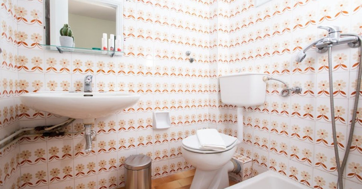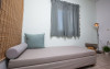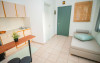 is divided into two main areas. The one consists of a single bed, bathroom, mini