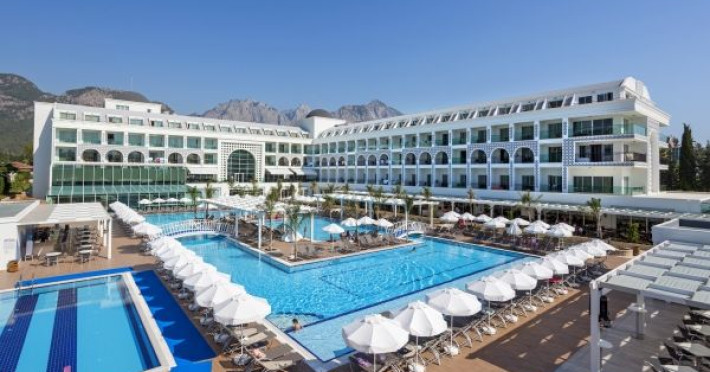 Locație: La 30 km de centrul orașului Antalya. La 40 km de Aeroportul Internațional Antalya. La 8 km de orașul Kemer. Transport: Autobuze publice trecând la intervale de 15 minute spre Antalya și Kemer. Stație de taxi în apropiere. Altele: Metode de plată: Visa, Eurocard, Mastercard, numerar. Nu se acceptă animale de companie. Limbi vorbite: Turcă, Rusă, Engleză, Germană. Cazare și Concept: Camere Standard (23 m²): Un pat king size sau două paturi twin, WC și duș, uscător de păr, TV satelit, telefon, seif, minibar, aer condiționat central, podea laminată și balcon. Servicii pentru Camere: Recepția deschisă 24/7. Curățenie zilnică, schimbarea prosoapelor și a lenjeriei la fiecare două zile. Canale TV: Turcă, Rusă, Ucraineană, Olandeză, Germană, Flamandă, Franceză, Elvețiană, Fashion, Muzică, Desene animate și canale de informații. Servicii de Mâncare și Băutură: Servicii 24/7 cu meniuri deosebite și arome memorabile. Room service disponibil 24/7 cu taxă suplimentară. Alcoolul se servește în pahare în toate departamentele de food & beverage. Restaurantele A'la Carte sunt cu rezervare și contra cost. Minibarul se umple doar la check-in. Săli de Ședințe: Sala Turquoise: Capacitate totală: 300 persoane. Măsuri: Sala 1 (240 m²), Sala 2 (132 m²), Scenă (18 m²). Piscine și Plajă: Piscine: Piscină exterioară, piscină cu tobogane, piscină pentru copii, piscină interioară, piscină interioară pentru copii. Plajă: Plajă cu pietriș/nisip la 90 m de hotel. Șezlonguri și umbrele incluse. Prosoape de plajă disponibile cu card (pierderea cardului plătibilă). Animație: Activități zilnice, aqua gym, aerobic, competiții sportive, spectacole de teatru, muzică live, animație pentru copii și adolescenți. SPA: 4 camere VIP de masaj, 4 camere standard de masaj și un centru de înfrumusețare într-o zonă de 700 m². Servicii de spa cu plată și gratuite: diverse tipuri de masaje, tratamente pentru piele și corp, sală de fitness, hamam turcesc, saună, duș de șoc. Servicii Hoteliere și Activități Sportive: Servicii incluse: Internet wireless în lobby, seif în camere, colț TV. Servicii cu plată: Internet wireless în camere și în zona hotelului, telefon, fax, copiator, servicii de spălătorie, coafor, room service, transfer de la/la aeroport și pavilioane private la piscină, sucuri de fructe proaspete, servicii medicale. Activități sportive gratuite: Tenis de masă, tenis, dart, baschet. Activități sportive cu plată: Biliard, echipament tenis, iluminare teren tenis. Observații: Orarele și serviciile pot fi modificate de administrația hotelului. Operațiunile și facilitățile exterioare pot fi modificate în funcție de condițiile meteorologice.Localizare