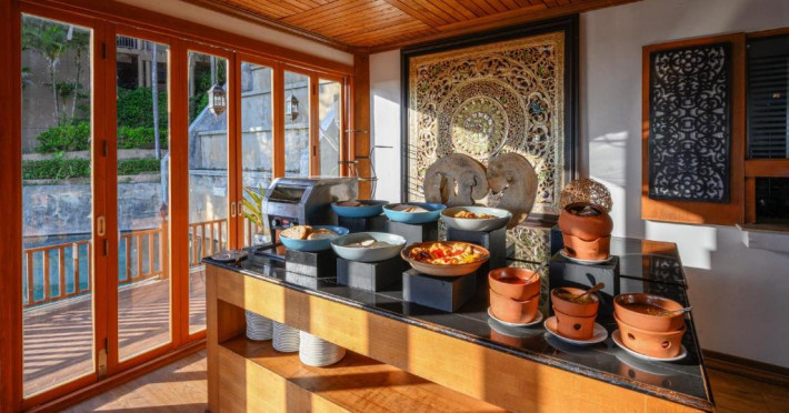 Briza răcoroasă a mării insoțește specialitățile thailandeze la restaurantul in aer liber al Resort Karon Phunaka. Mesele pot fi servite și in camere.
